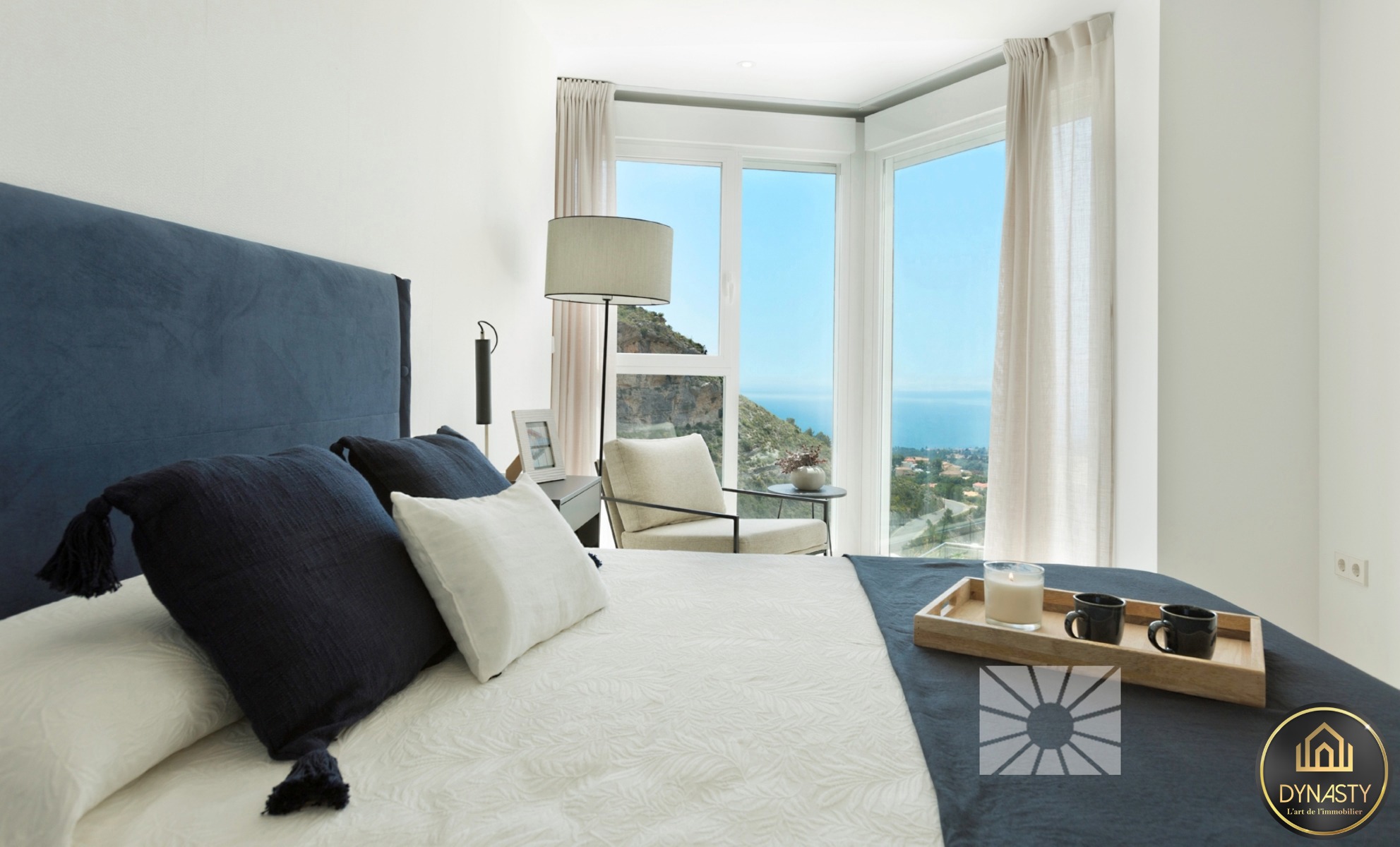 Complexe résidentiel très lumineux, avec de grands espaces intérieurs, une architecture unique dans un cadre naturel offrant une vue panoramique sur la mer Méditerranée et le skyline de Benidorm.