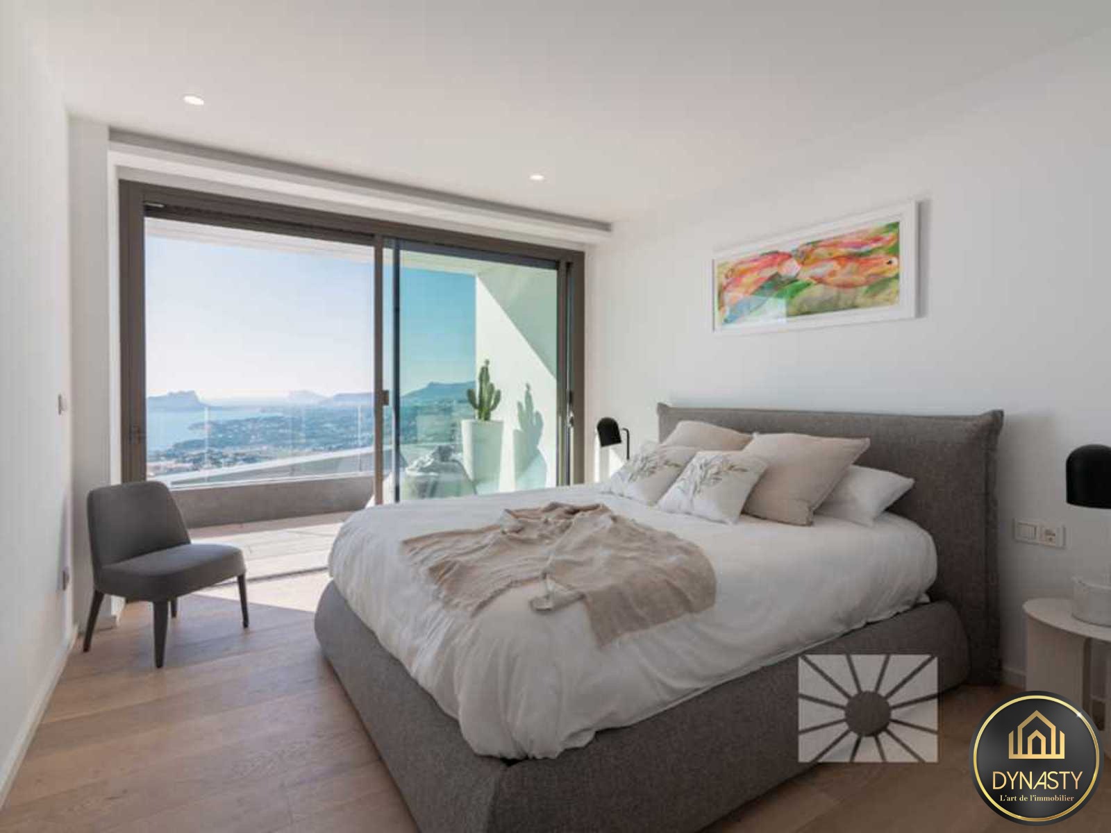 La chambre principal a été conçue pour offrir confort et détente, une espace privée avec une grande salle de bains en suite avec baignoire et douche permettant de contempler la mer, un grand dressing et accès à une terrasse privée.