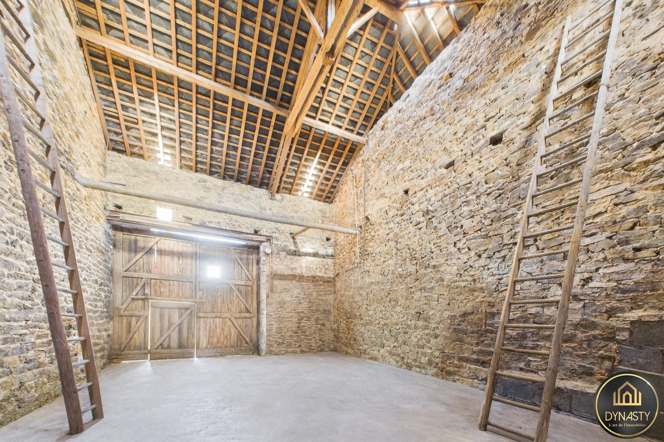 Composée d’un vaste séjour, d’un garage, d’une cave, d’un grand jardin et surtout de deux granges offrant respectivement plus de 50 m² et plus de 60 m² avec étage, cette propriété présente un potentiel exceptionnel. Il est aisément envisageable d’y développer une habitation de plus de 150 m² après rénovation.